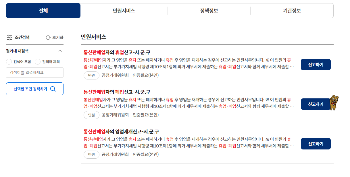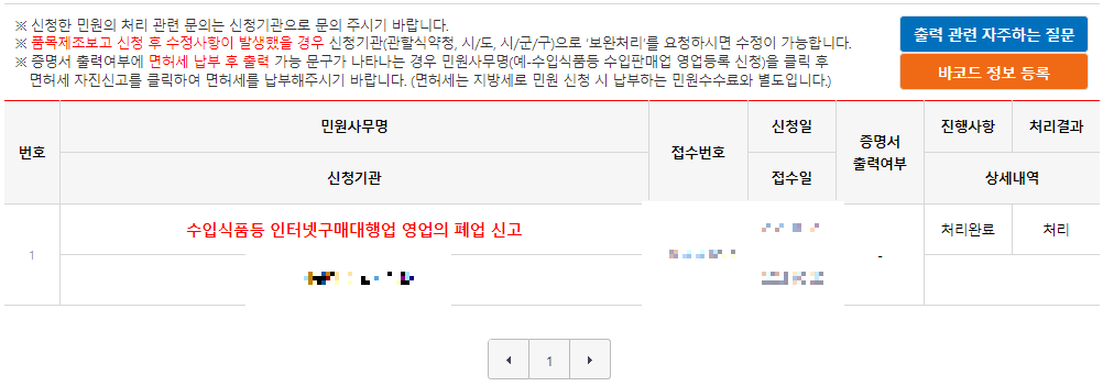가장 중요한 내용이 마무리 되었고 저와 같은 경우에는 수입식품 인터넷 구매대행업을 등록했기에 이에 관한 폐업처리도 해주어야 합니다.