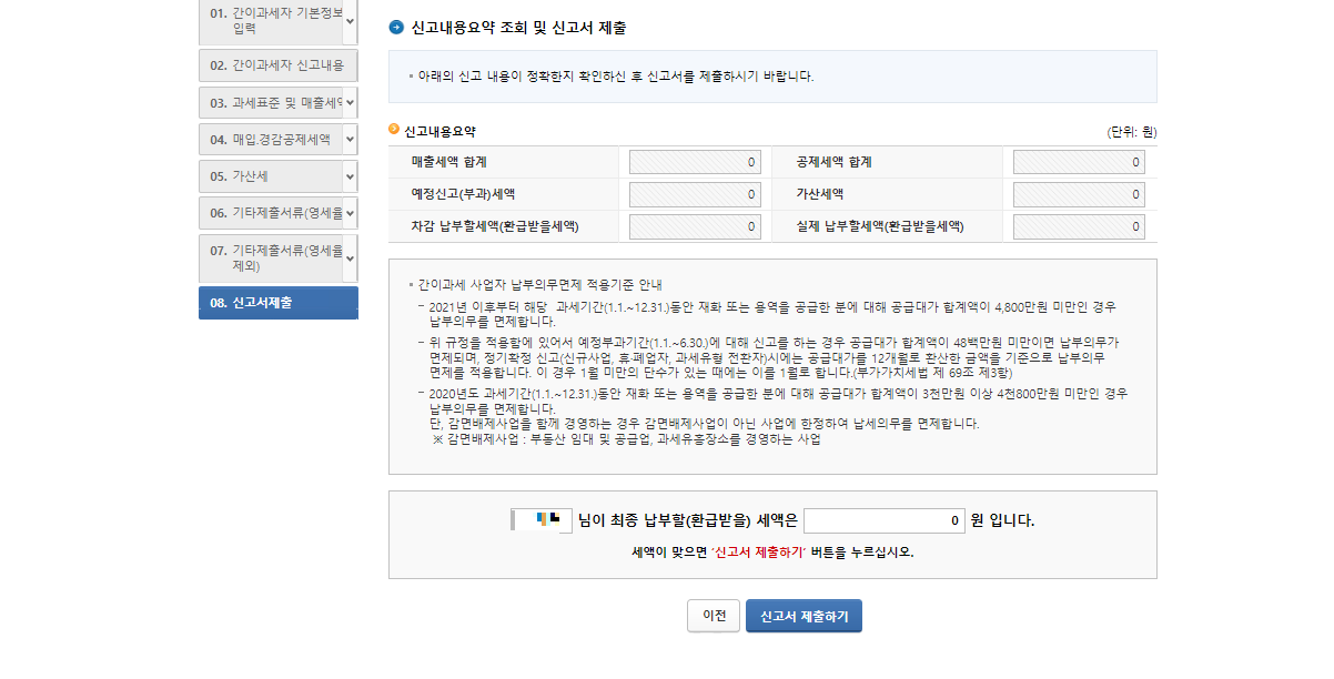 부가가치세 신고 중 무실적일 경우 무실적 신고를 하면 좀 더 간편하게 처리가 가능합니다.