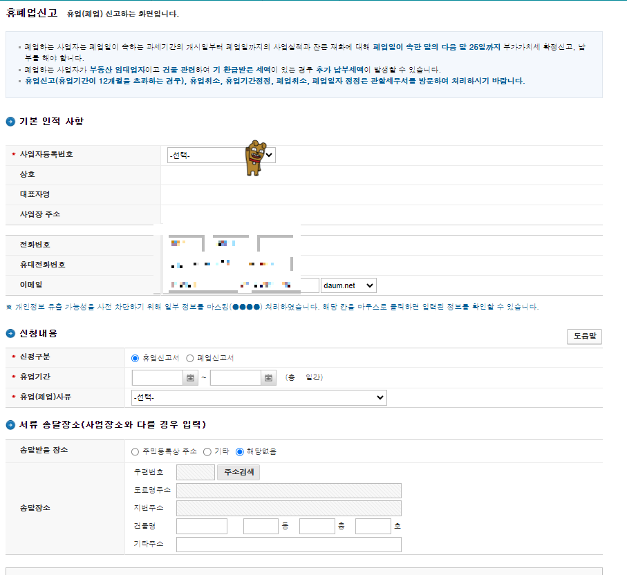 업체정보와 폐업내용을 작성해주시면 비교적 간단하게 끝이납니다.