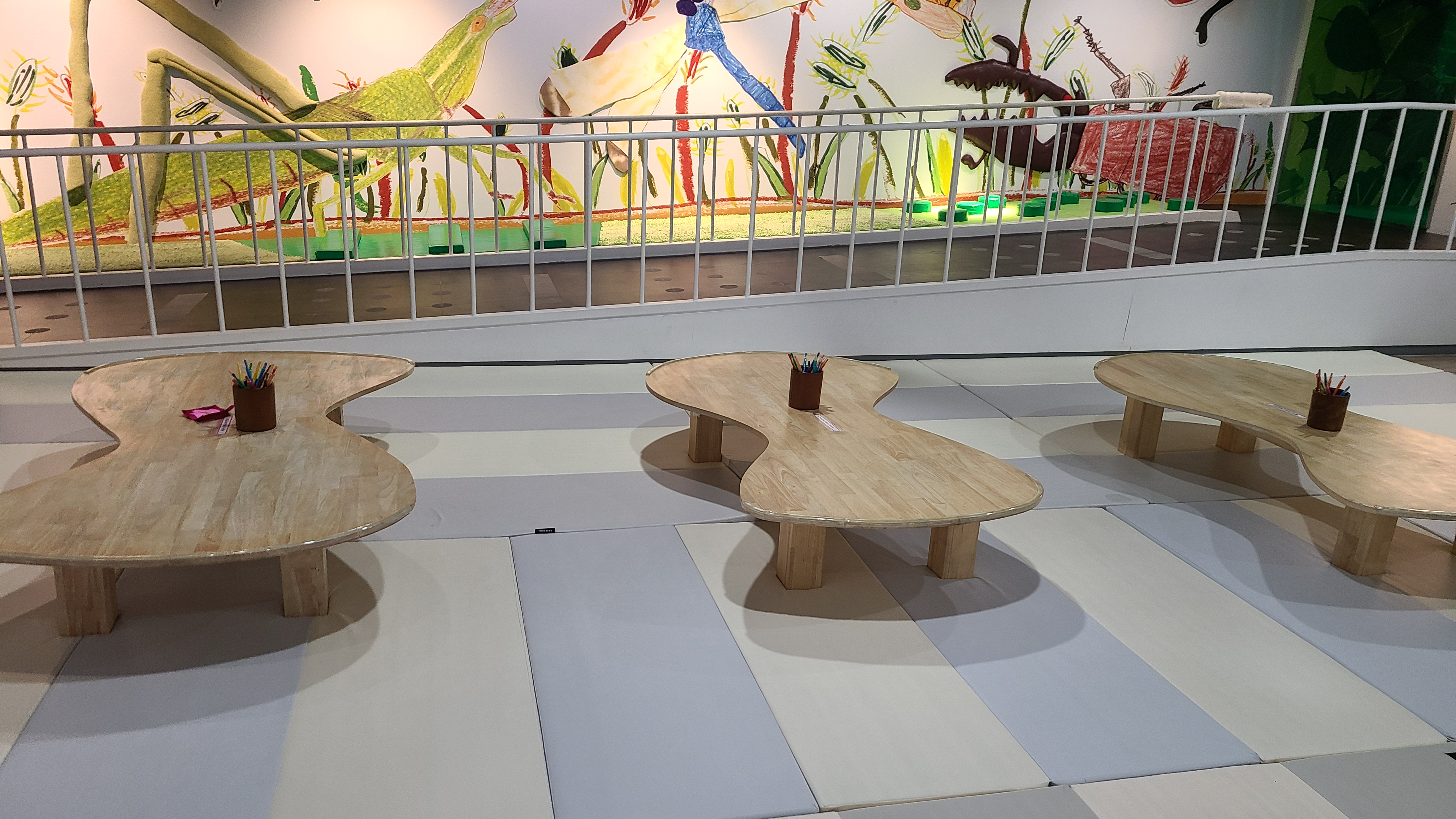색종이 접기 공간이 있어서 소근육 활동도 같이 해볼 수 있다. 1층과 2층 사이 정글짐공간으로 이어져 있는데 높긴 하지만 어른과 함께 한다면 안전하게 즐길 수 있다.